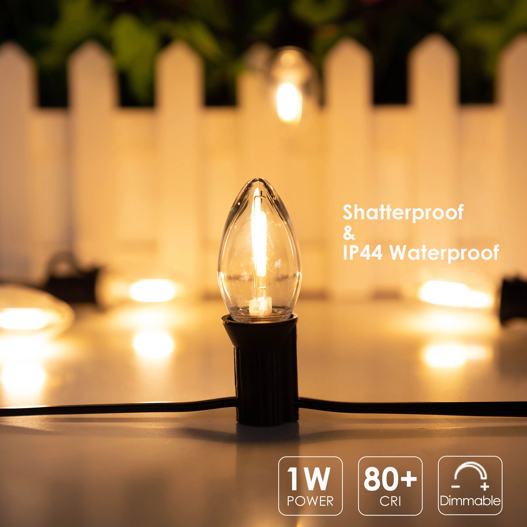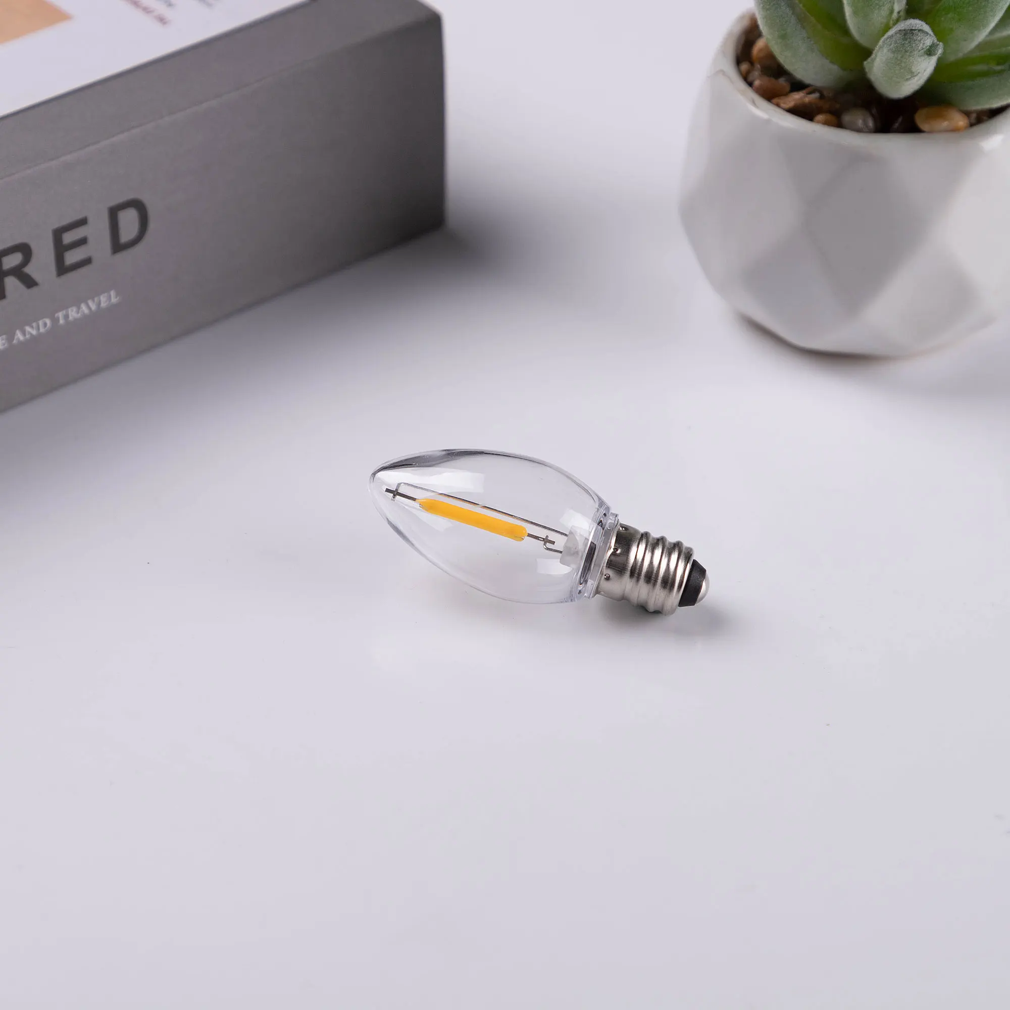 25PCS C7 1W Shatterproof Plastic Led Light Bulbs E12 Equal to 7W Incandescent Decor Bulb For Outdoor String Light Replace Bulbs